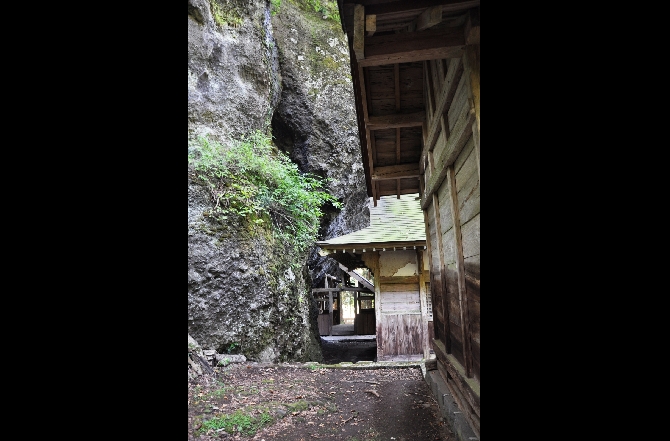 昔、神様のお告げがあり、岩塊の側に神社を移したそうです。