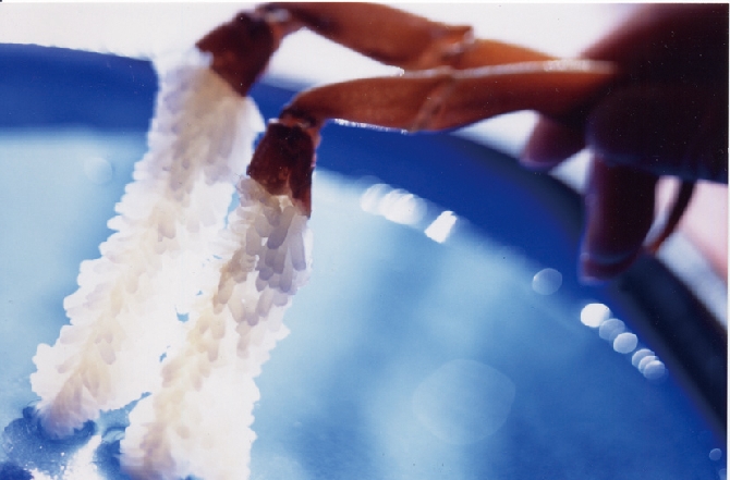 その場で選んだかにを、焼き、、ゆで、刺身など好みに合わせて調理してくれます。
